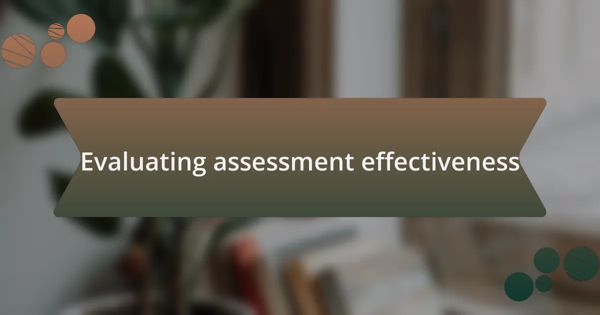 Evaluating the effectiveness of assessments goes beyond simply checking grades; it requires examining how well assessments serve learning goals. I have often found myself reflecting on the moments when a student has an epiphany during a test, realizing they know more than they thought. Isn’t it rewarding to witness that transformation?